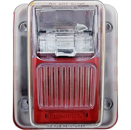 The Gentex GCC24CR is a red, wall-mount selectable-candela 24VDC horn/strobe. P/N 904-1209-002