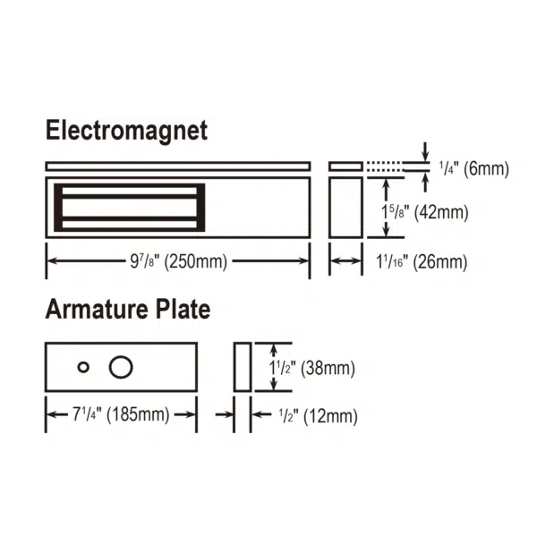 | Dimensions – Armature Plate | 7-1/4″x1-1/2″x1/2″ (185x38x12 mm) |