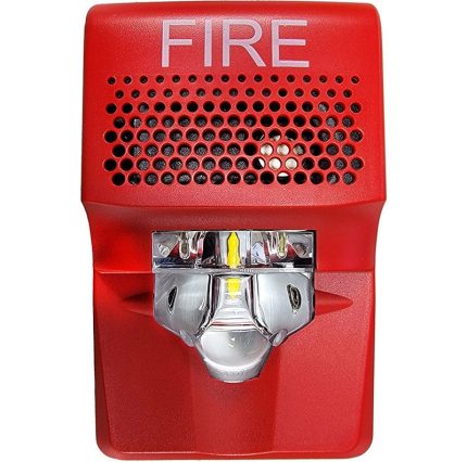 Genesis Chime-Strobe (selectable 15, 30, 75, or 110 cd output, selectable high/low dB output) Red with “FIRE” marking Operating voltage: