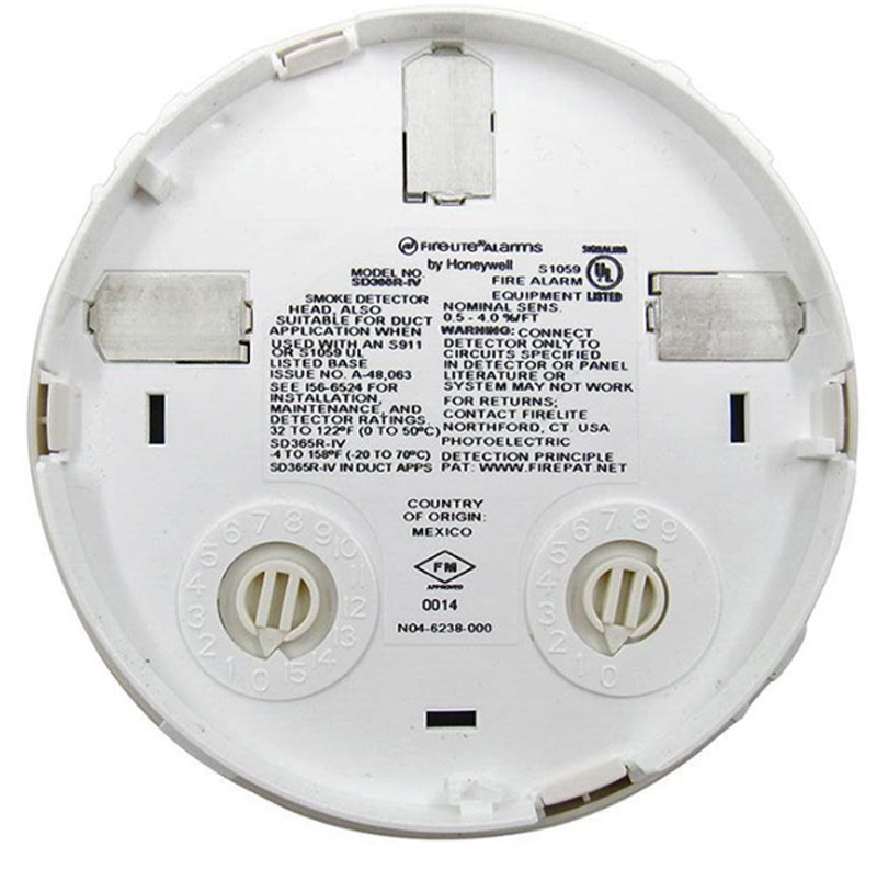 The Fire-Lite SD365R-IV Photoelectric Detector w/ Remote Test (Ivory) can be remotely tested using the RTS151 or RTS151KEY test accessories. When used in duct applications with a DNR(W), testing can be done remotely. Rotary dial switches are provided for setting the sensor’s address. Compatible for use with either LiteSpeed or CLIP communications protocol. For Duct Applications, use with System Sensor DNR Duct Smoke Detector Housing or DNRW Watertight Duct Smoke Detector Housing.