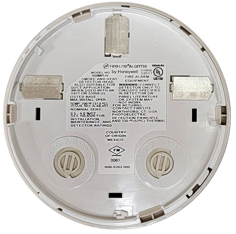 Fire Lite SD365T-IV Intelligent Photoelectric Smoke w/ Thermal Sensor (Ivory) is a plug-in type multi-sensor that combine a photoelectronic sensing chamber and 135°F (57.2°C) fixed temperature heat detector across addressable-analog communications. Rotary dial switches are provided for setting the sensor’s address. Works with both CLIP and Lite-Speed protocols COMPATIBLE BASES and ACCESSORIES: — B300-6-IV: Ivory, standard flanged low-profile mounting base — B501-IV: Ivory, standard European flangeless mounting base — B200S-IV: Ivory, Intelligent, programmable sounder base — B200SR-IV: Ivory, Intelligent sounder base for retrofit applications — B200S-LF-IV: Ivory, Low Frequency Intelligent, programmable sounder base — B200SR-LF-IV: Ivory, Low Frequency Intelligent sounder base for retrofit applications — B224RB-IV: Ivory, plug-in System Sensor relay base — B224BI-IV: Ivory, plug-in System Sensor isolator detector base — TR300-IV: Ivory, replacement flange for B210LP or B300-6 bases — RA100Z(A): Remote 3–32VDC LED annunciator, mounts to a U.S. single-gang electrical box, for use with B501 and B300-6 bases.