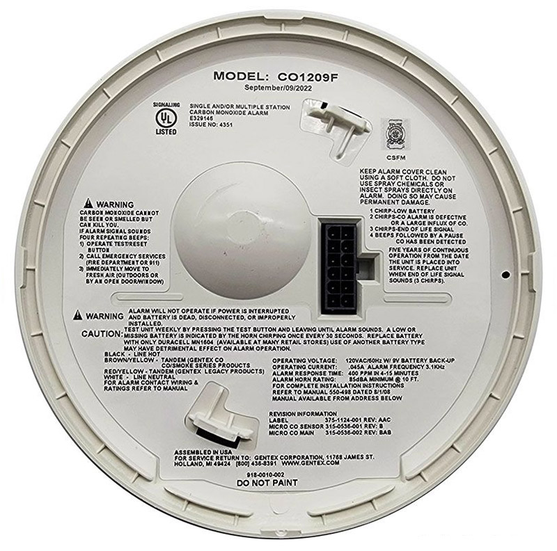Gentex CO1209F Carbon Monoxide Alarm w/ Relay