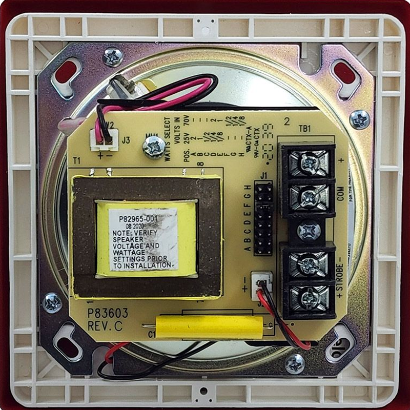 The Siemens SEF-MC-R is a red Speaker Strobe for wall mounting. 24VDC. Features dual voltage (25/70 VRMS) capability and field selectable taps from 1/8 to 2 watts. Strobe options for wall mount models include MC multi-candela strobe with field selectable candela Settings of 15/30/75/110cd or 135/185cd. Strobes can be synchronized using the Siemens DSC sync modules | Siemens Modular / FireFinder XLS panels (252 / 504-point addressable) or PAD-series NAC extenders with built-in sync protocol. p/n 500-636037
