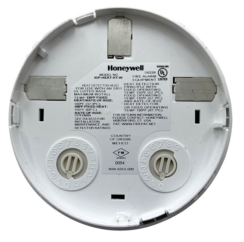 The Silent Knight IDP-HEAT-HT-W is a Fixed Hi-Temp (190F) Thermal Sensor (White). The IDP-HEAT-W series detectors are compatible with the following Honeywell-Silent Knight-Farenhyt Series FACPs: • IFP-2100 / IFP-2100ECS / RFP-2100 • IFP-2000 / IFP-2000ECS / RPS-2000 • IFP-1000 / IFP-1000ECS • IFP-300 / IFP-300ECS • IFP-100 / IFP-100ECS • IFP-75 • IFP-50 COMPATIBLE BASES and ACCESSORIES: — B300-6: White, standard flanged low-profile mounting base — B501-WHITE: White, standard European flangeless mounting base — B200S-WH: White, Intelligent, programmable sounder base — B200SR-WH: White, Intelligent sounder base for retrofit applications — B200S-LF-WH: White, Low Frequency Intelligent, programmable sounder base — B200SR-LF-WH: White, Low Frequency Intelligent sounder base for retrofit applications — B224RB-WH: White, plug-in System Sensor relay base — B224BI-WH: White, plug-in System Sensor isolator detector base — TR300: White, replacement flange for B210LP or B300-6 bases — RA100Z(A): Remote 3–32VDC LED annunciator, mounts to a U.S. single-gang electrical box, for use with B501 and B300-6 bases.