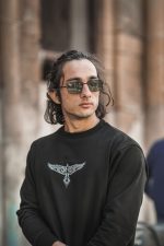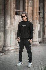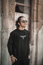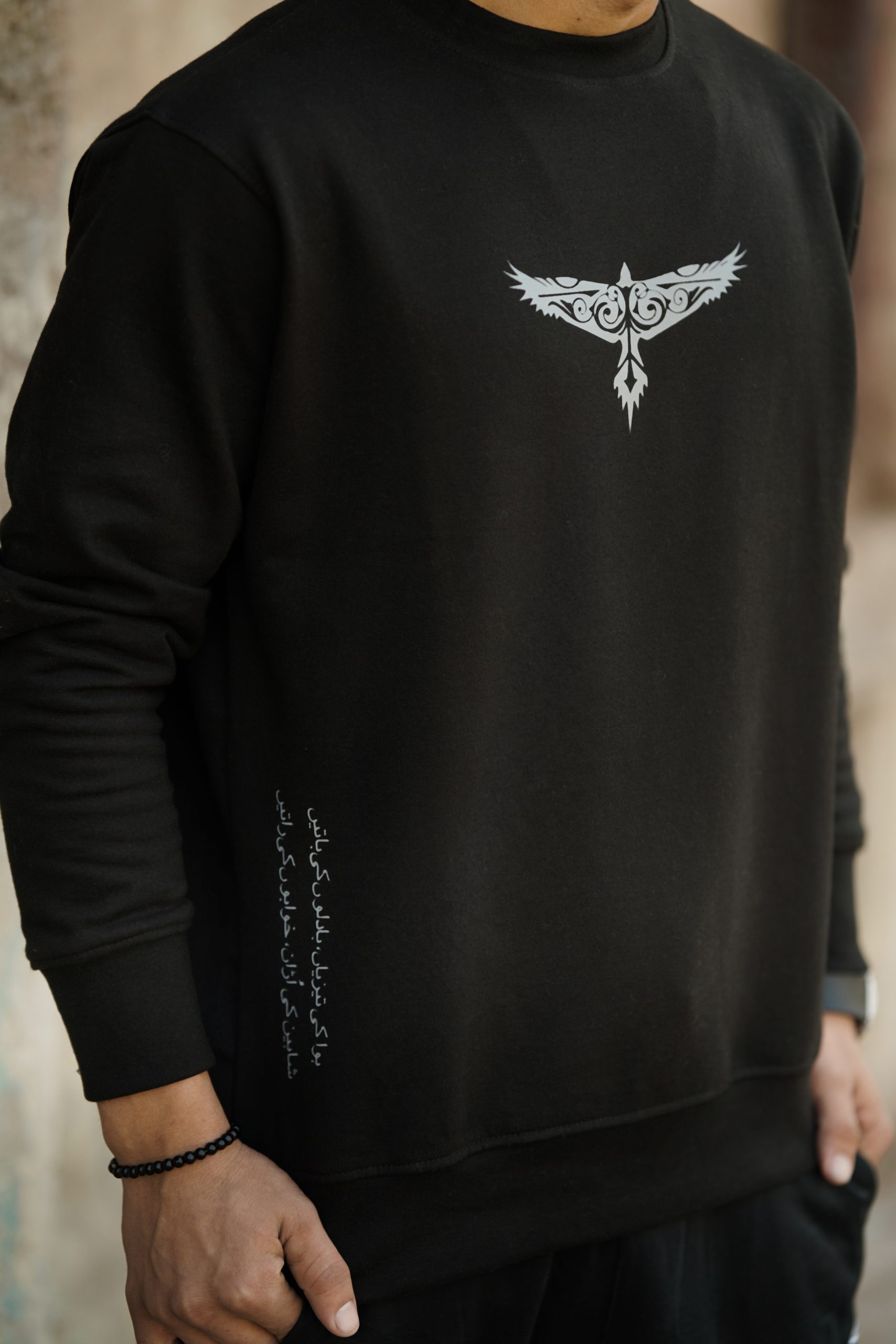 The Parvaaz Sweatshirt features a striking eagle pattern on the front, symbolizing strength and freedom. Below it, a touch of Urdu poetry adds depth, making it a perfect blend of power and elegance.